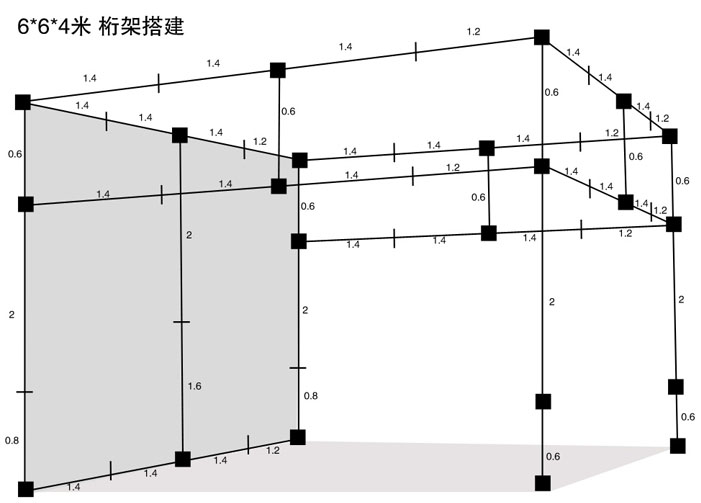 2*2拉网接待台1套、洽谈桌2套、长条桌2套、绿色植物2株、资料架2个、红色地毯、射灯*20盏、折叠桁架